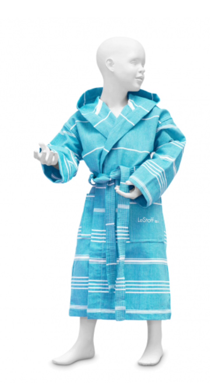 Der LeStoff Bademantel für Kids mit Kapuze aus 100 % Bio-Baumwolle hält warm ohne aufzutragen. Er ist genau das Richtige für einen Tag am Wasser, im Urlaub oder auch für zuhause nach dem Duschen oder Baden.